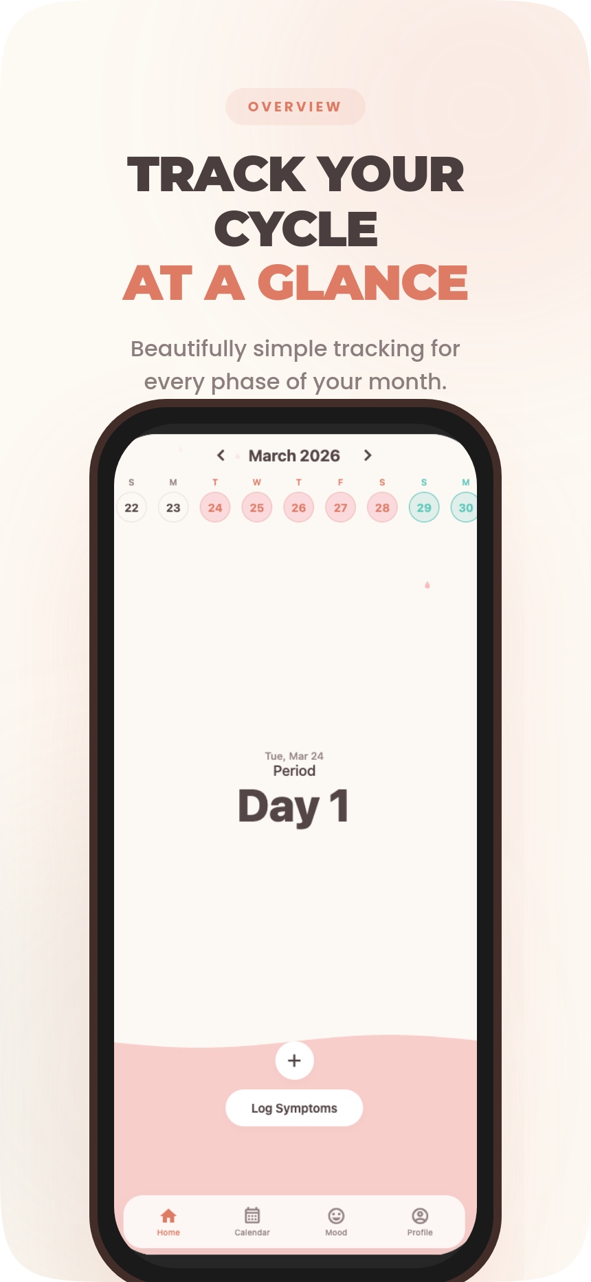 Track your period with AI-powered predictions, log your mood and symptoms, and get personalized cycle insights — all in one beautiful app.